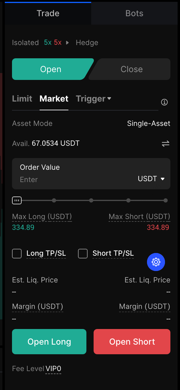• إدارة الهامش اليدوية: أضف هامشًا أو قلل حجم المركز لتقليل مخاطر التصفية، خاصة قبل إغلاق السوق.