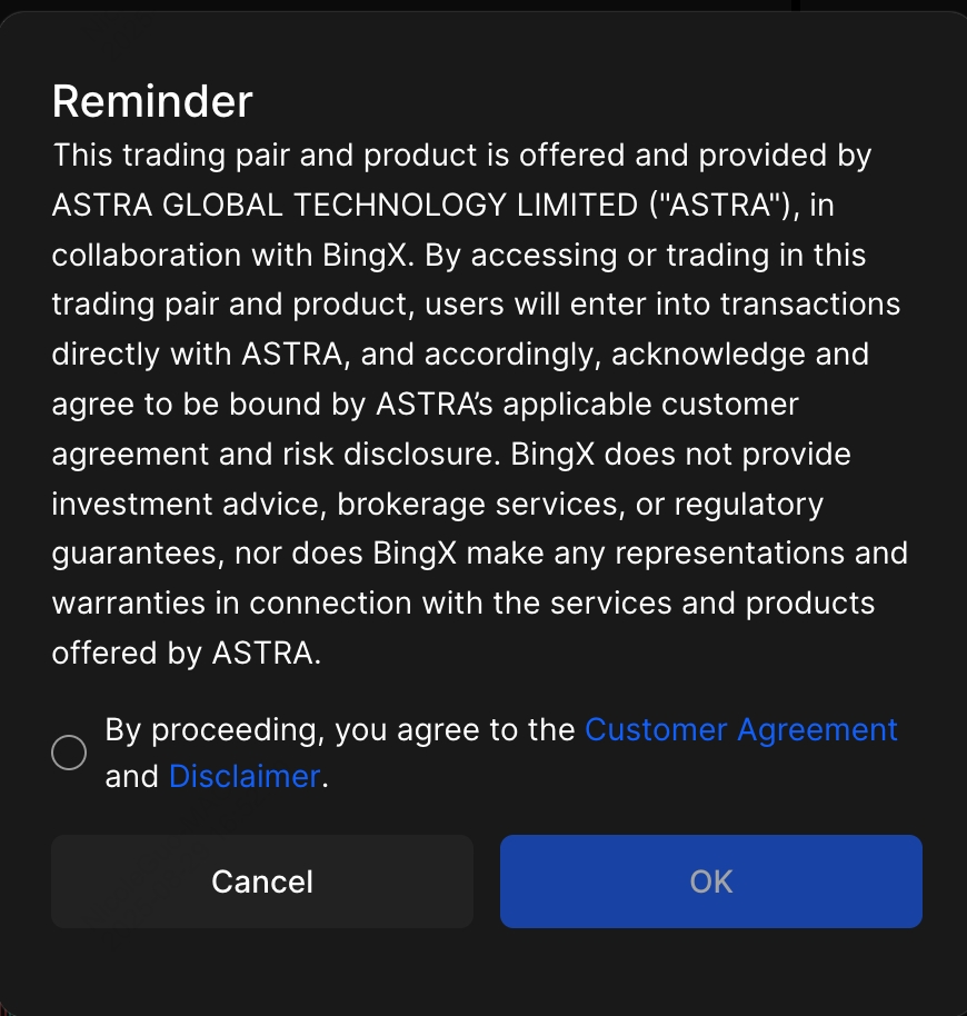 للحد من التقلبات الشديدة عند افتتاح السوق، تحد BingX مؤقتًا جني الأرباح عند مضاعف ربح 20x خلال الدقيقة الأولى من التداول، وبعد ذلك تستأنف ظروف التداول العادية تلقائيًا.