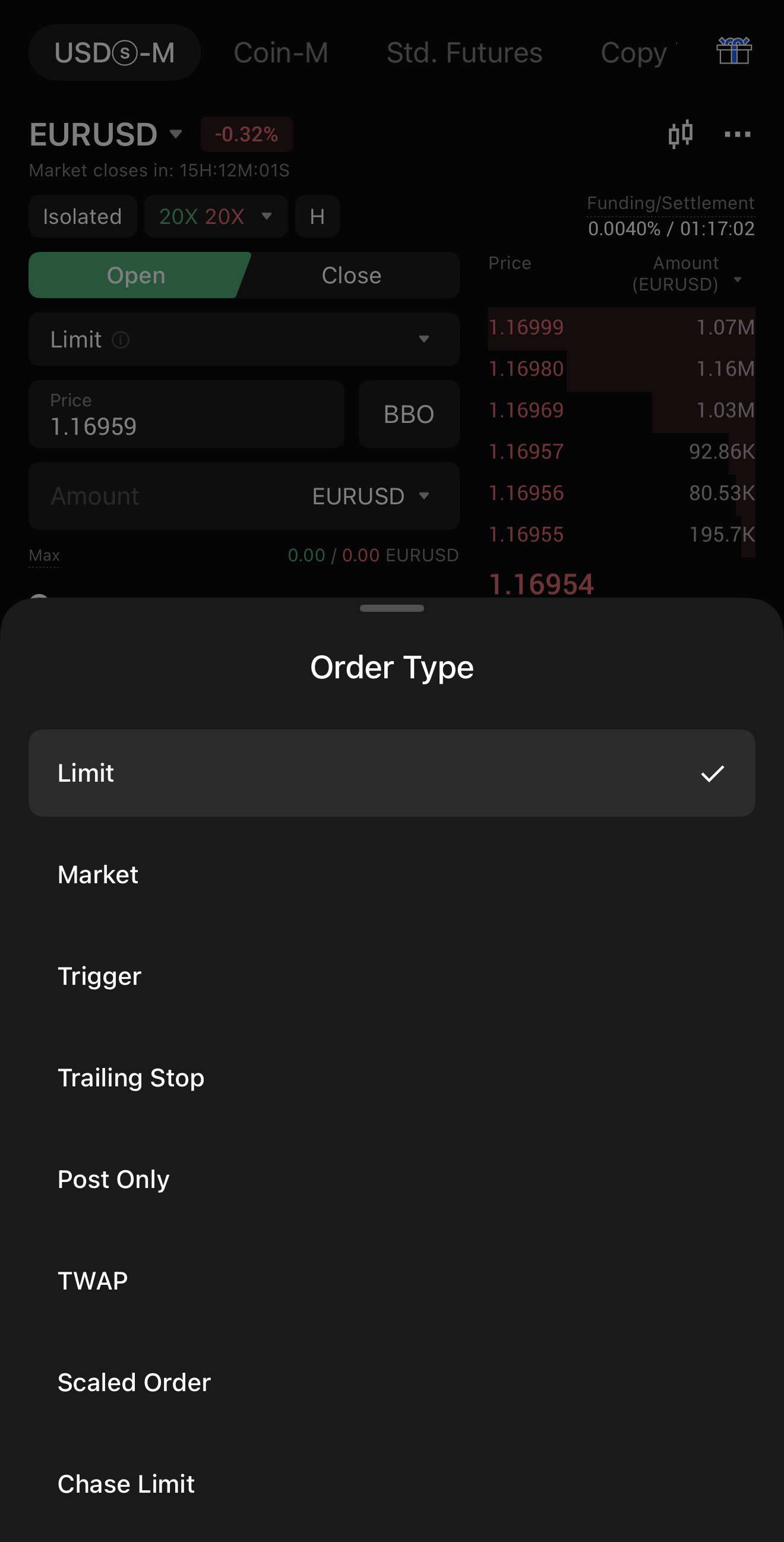 • قبل خمس دقائق من إغلاق السوق، يزداد معدل هامش الصيانة بنسبة 2.5% (على سبيل المثال، من 1% إلى 1.025%)، مما قد يزيد من مخاطر التصفية إذا كان هامش الأمان الخاص بك رقيقًا.