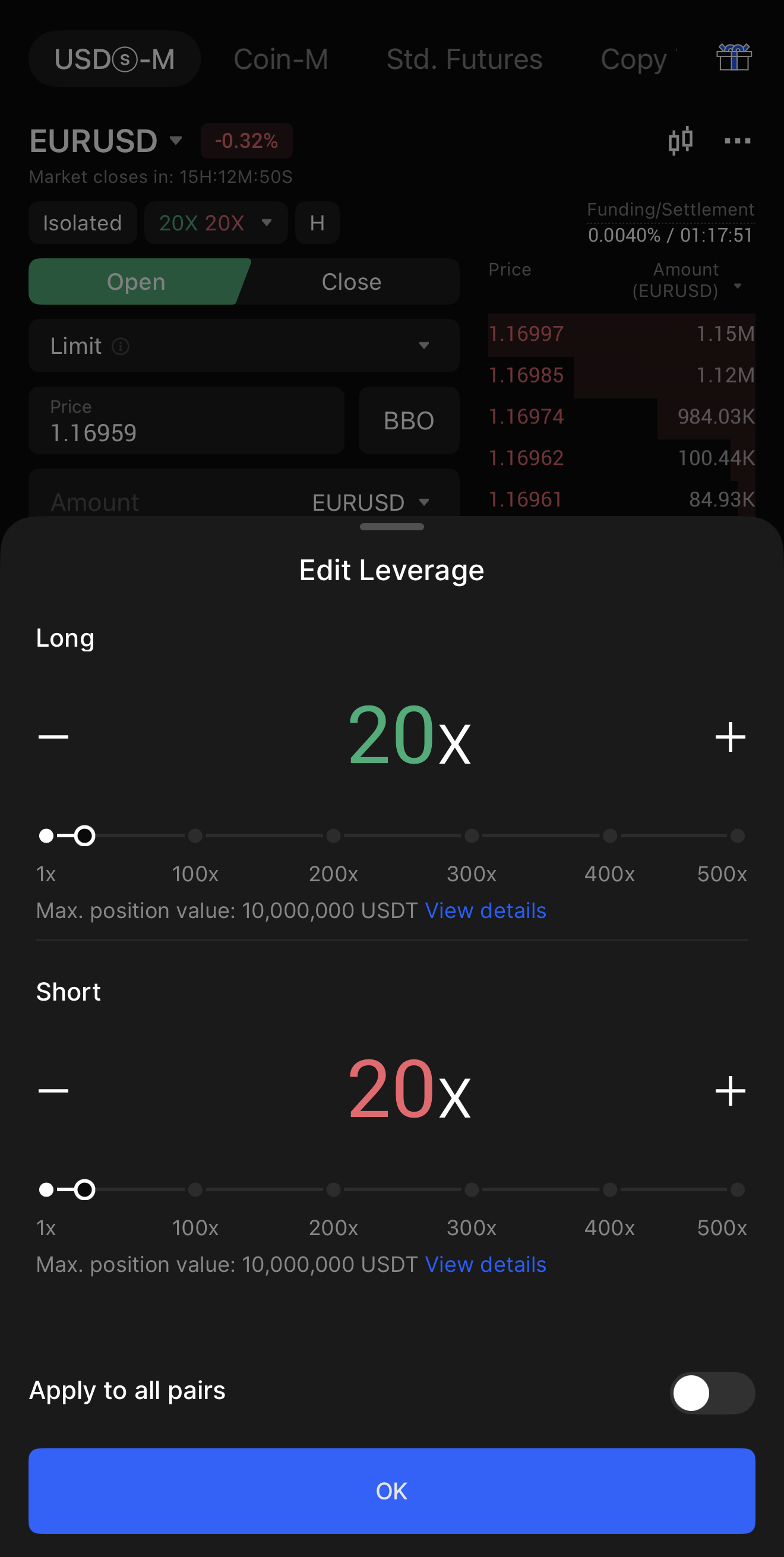 3. أكد إعداد الرافعة المالية الخاص بك قبل وضع الأمر.