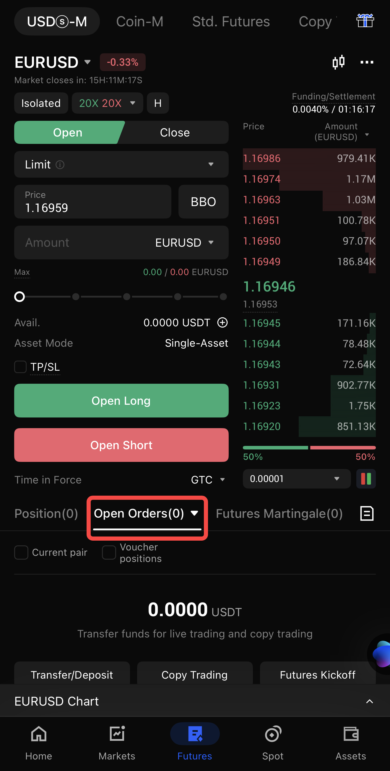 1. في أسفل الشاشة، اضغط على "العقود الآجلة" ثم "العقود الآجلة الدائمة".