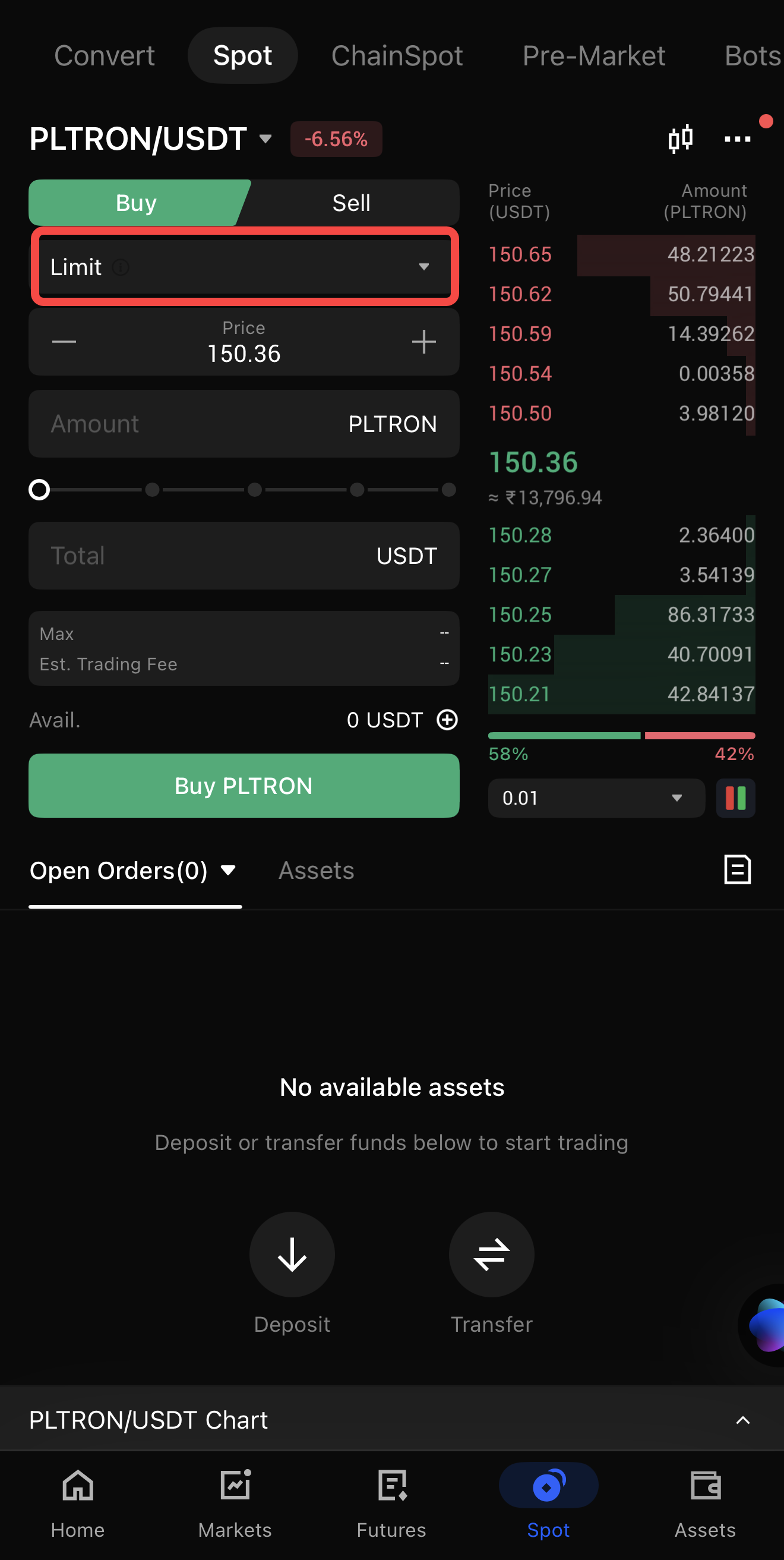 1. Navigate to Spot Market: Go to
