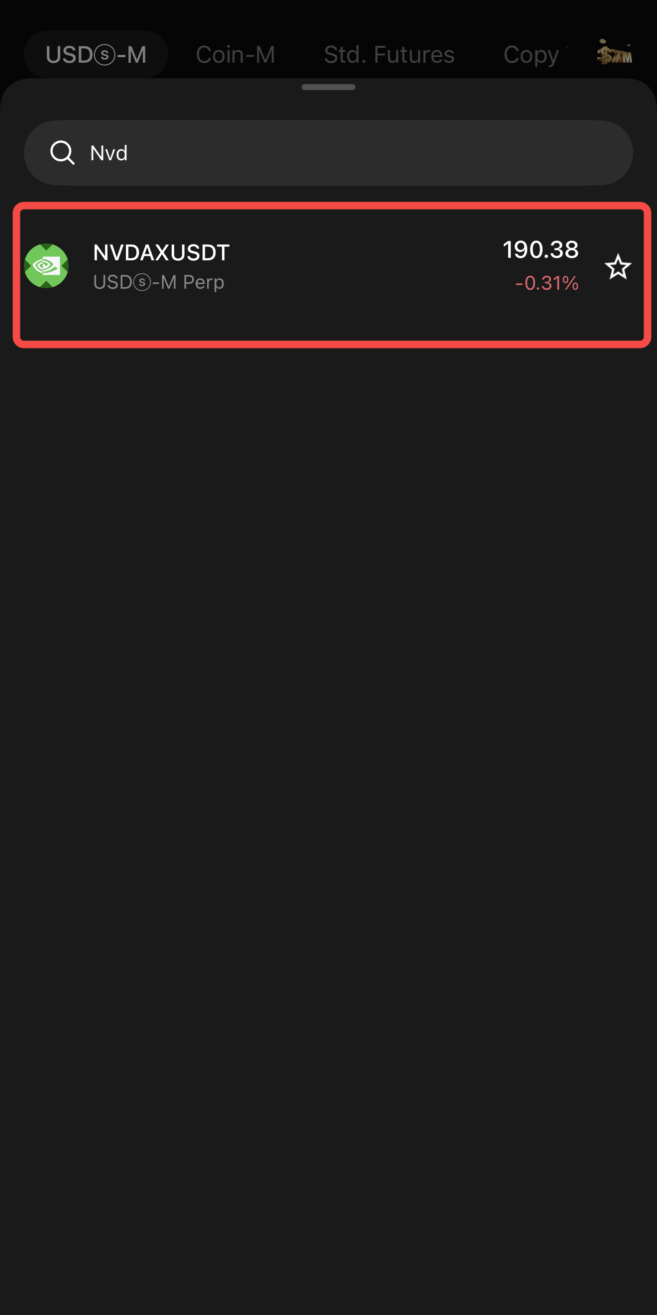 2. Select a futures contract: Search for the tokenized stock futures pair you want to trade.