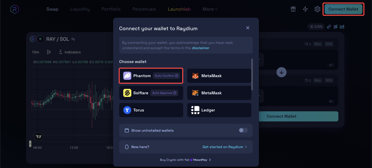 3. Connect to a supported DEX: On Solana, tokenized stocks are commonly traded on DEXs like Raydium or other xStock-compatible venues. Connect your wallet and confirm network access.