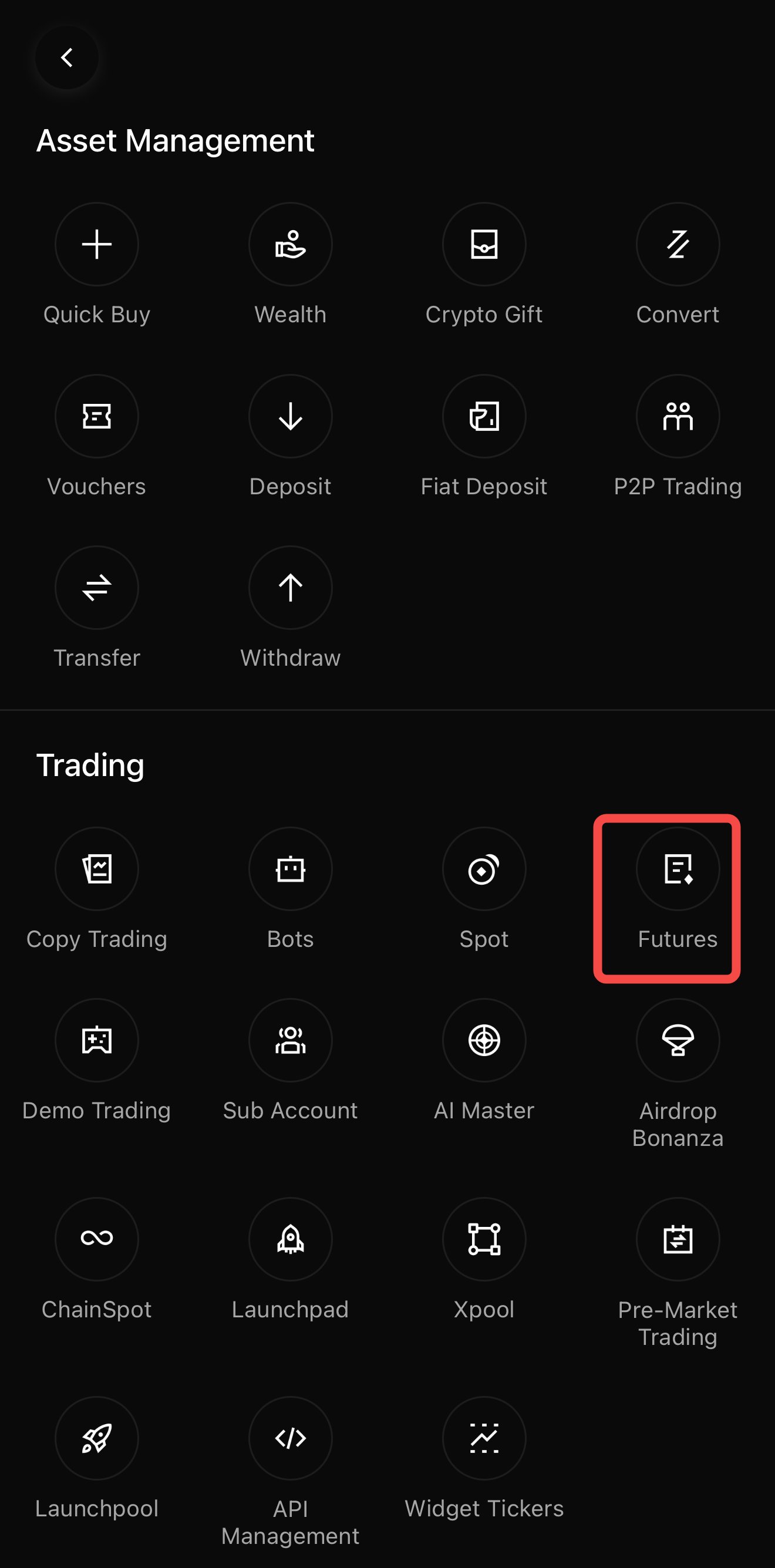 Futures trading on the app is designed for active traders seeking leverage and two-way market exposure.