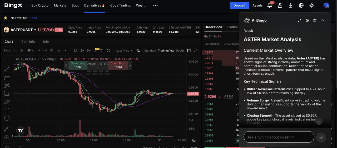 ASTER/USDT perpetual contract on the futures market powered by BingX AI
