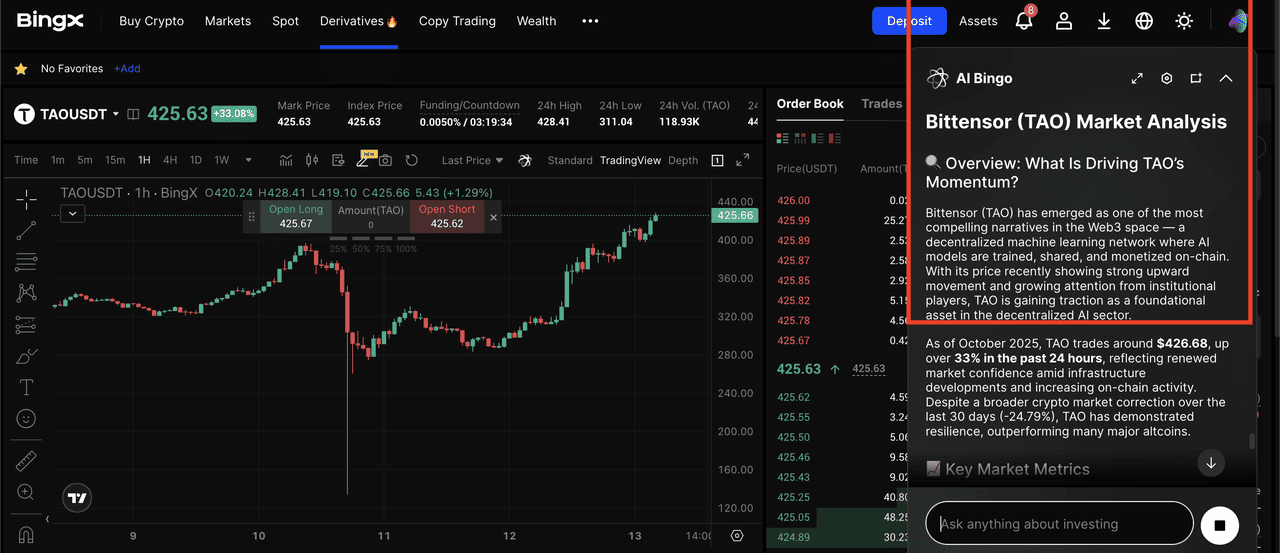 TAO/USDT perpetual contract on the futures market powered by AI Bingo