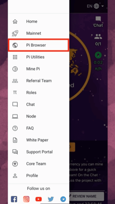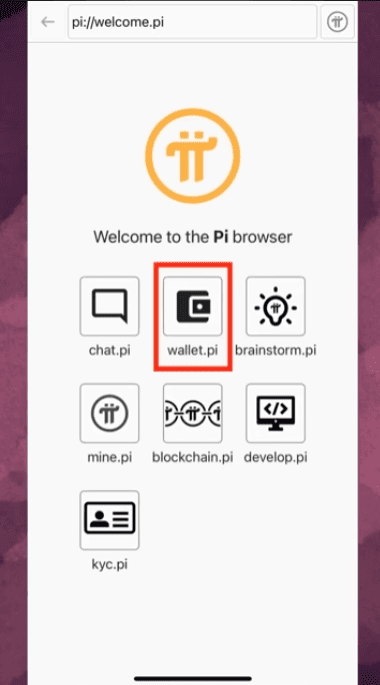 Step 5: Click on the “wallet.pi” option in the Pi Browser.