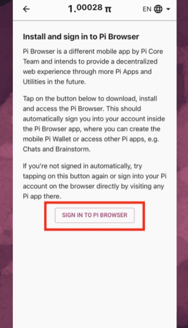 Step 4: Click on “sign in to Pi Browser” to continue.