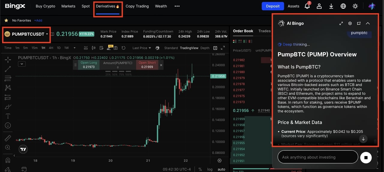 PUMPBTC/USDT perpetual contract on the futures market powered by AI Bingo