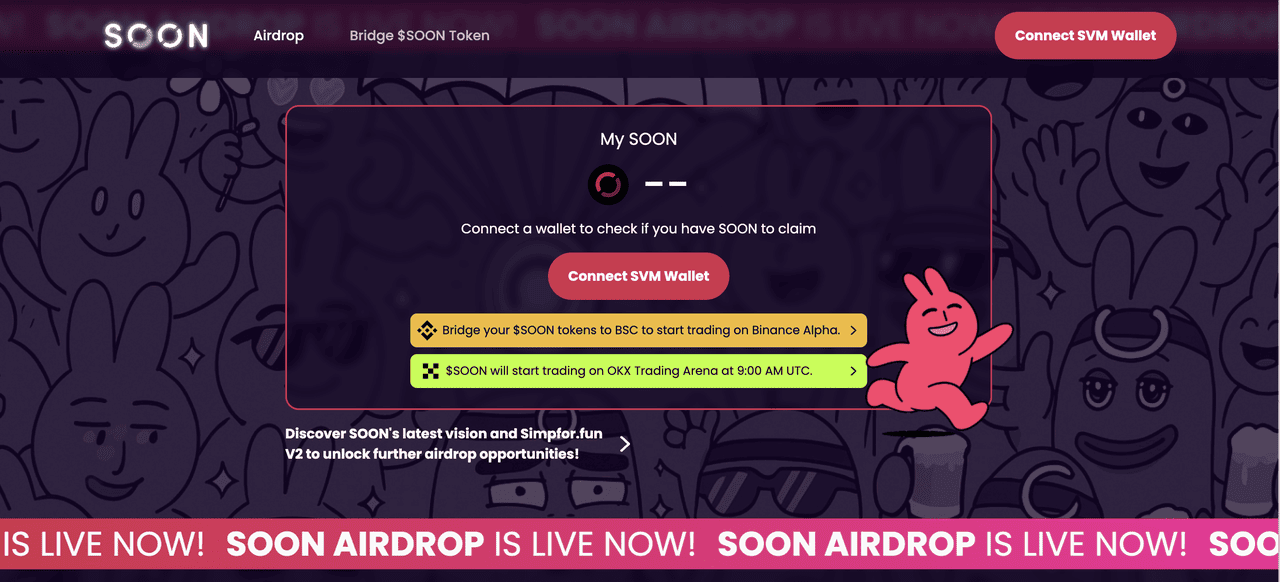 Eligible users can claim $SOON through the official Soon airdrop claim portal.