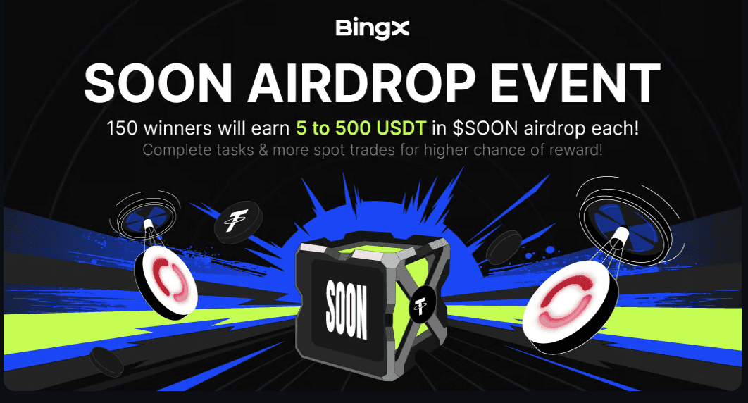 BingX is running a limited-time $SOON airdrop event. Here’s how to participate: