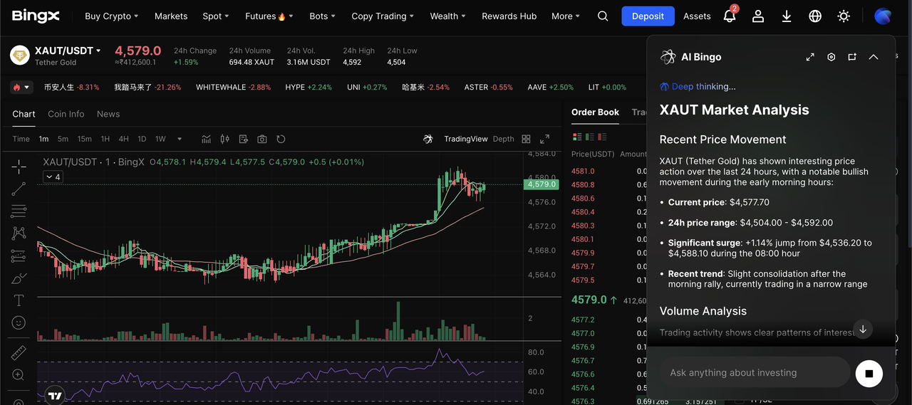 XAUT/USDT trading pair on the spot market powered by BingX AI insights