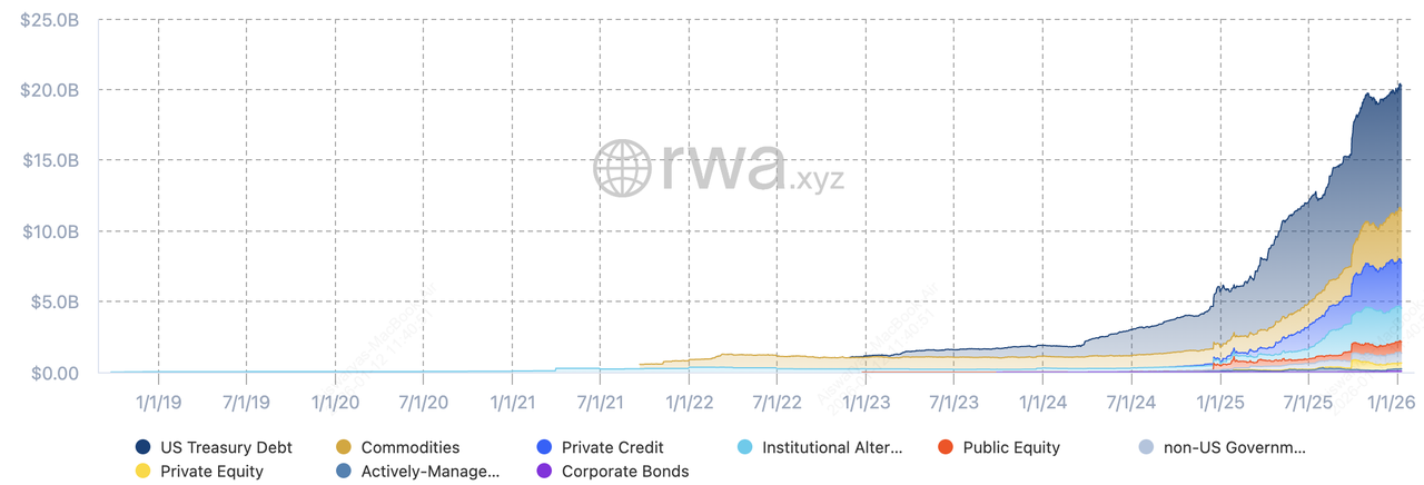 tokenized real-world assets (RWAs) become the investable product layer. This shift is already measurable: as of January 2026, RWA.xyz tracks over $20 billion in distributed on-chain RWA value and over $307 billion in stablecoin value, showing how quickly crypto rails are becoming a parallel financial layer.