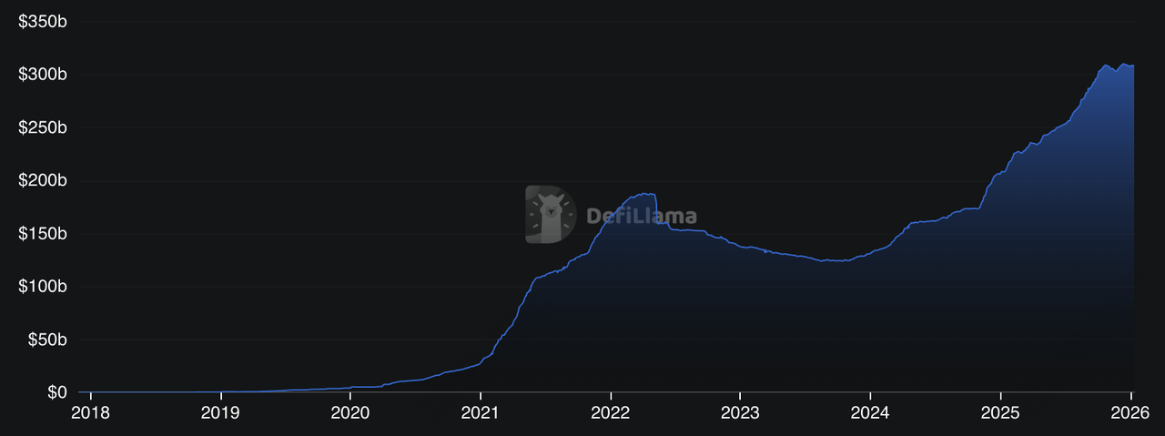 This is why stablecoins matter too. Tokenized assets need on-chain “cash” for settlement, and stablecoins have become the dominant settlement layer in crypto markets, valued at over $307 billion as of January 2026, as per data on DefiLlama.