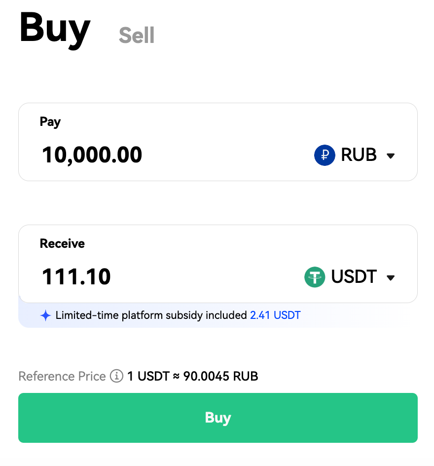 1. This event applies to orders placed through the "Quick Buy" page only. Orders made with selected merchants on the P2P page are not eligible for the subsidy. Subsidies are issued immediately upon token release. If the subsidy is not displayed during your purchase, the payment method you selected may not be eligible for the rate-guarantee subsidy.