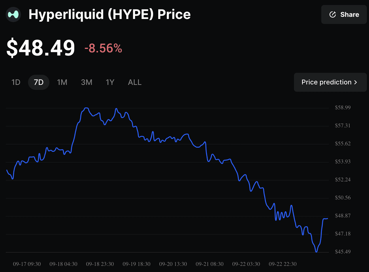 Mientras tanto, el token HYPE de Hyperliquid sigue siendo el peso pesado establecido, cotizando en el rango de 48 $ a 59 $ con una capitalización de mercado superior a 16.000 millones de dólares, casi 978.000 usuarios y más de 1.5 billones de dólares en volumen de trading acumulado. Estos contrastes ponen de relieve un enfrentamiento decisivo: ASTER es el explosivo recién llegado impulsado por la expectación y la innovación, mientras que HYPE es el veterano respaldado por una profunda liquidez, transparencia y dominio del mercado.