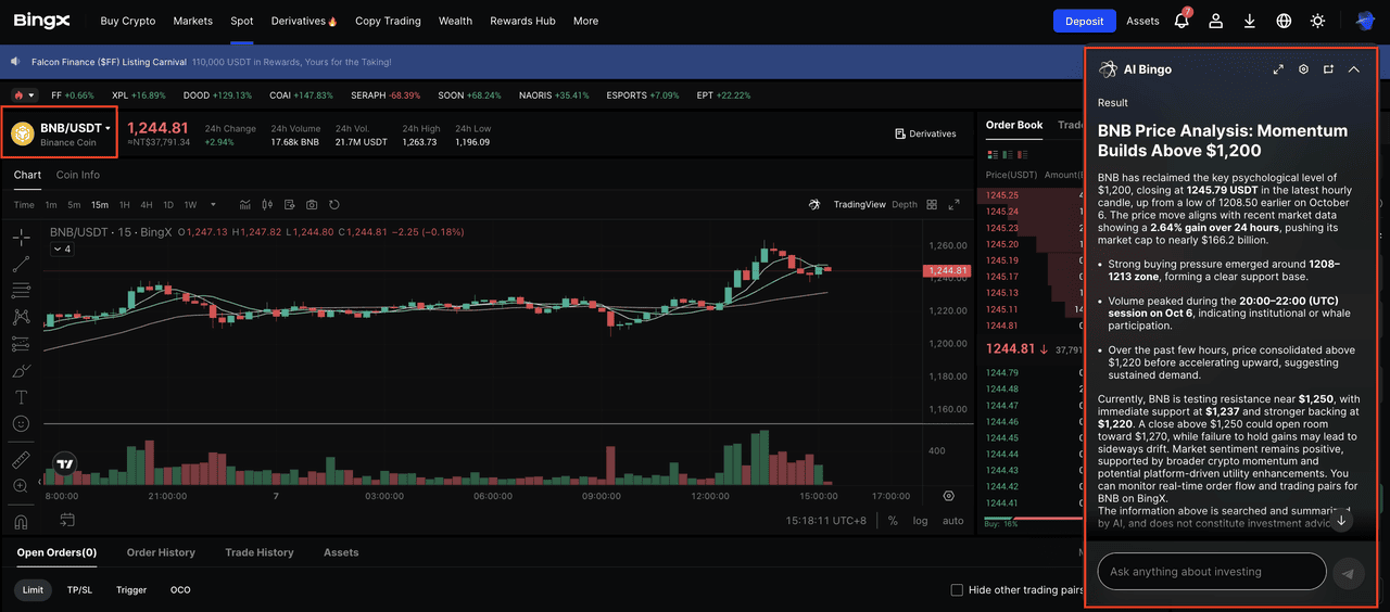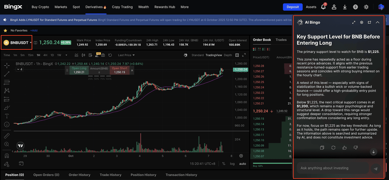 Paso 2: Utilice la IA de BingX para obtener información del mercado en tiempo real
