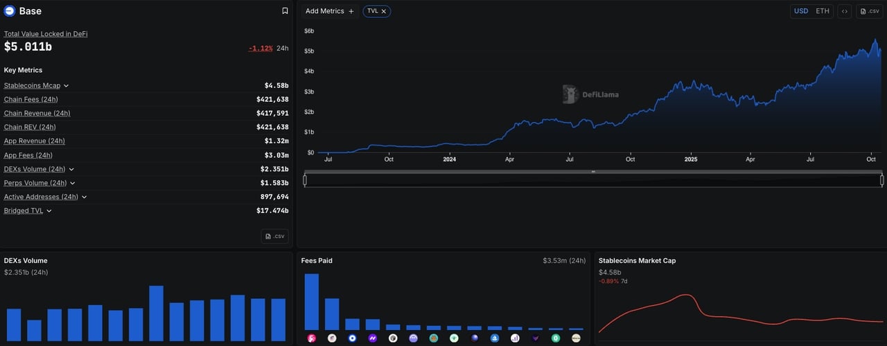 Múltiples informes clasifican a Base como una de las blockchains más grandes por TVL. El 16 de octubre, la red mostró una fuerte actividad, con 755,000 direcciones activas y más de $17 mil millones en activos puenteados en 24 horas.