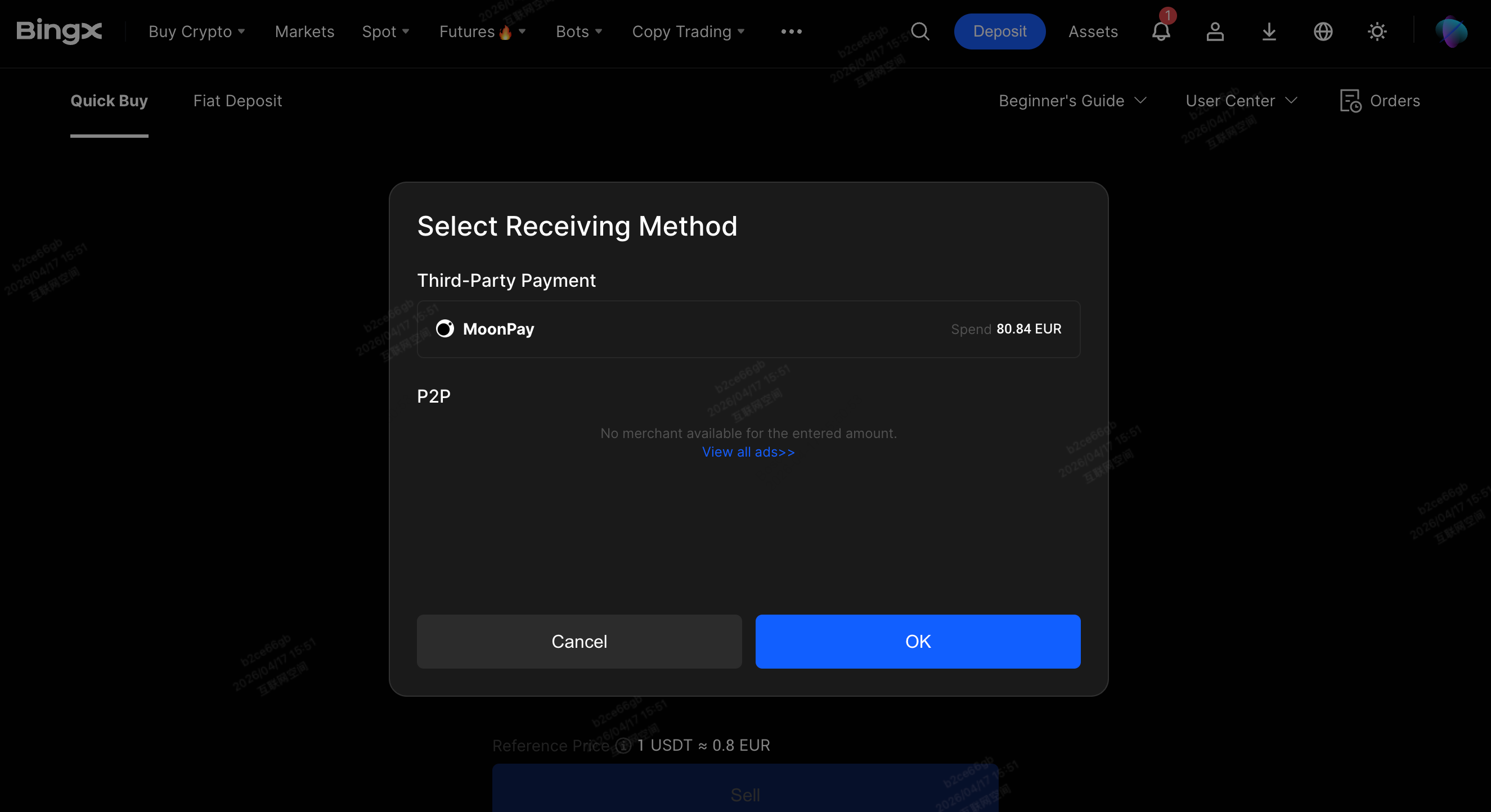 8. Vous pourrez voir l'adresse du portefeuille et le code QR pour envoyer la cryptomonnaie que vous souhaitez vendre. Enfin, utilisez votre portefeuille pour envoyer le montant de cryptomonnaie spécifié à cette adresse.