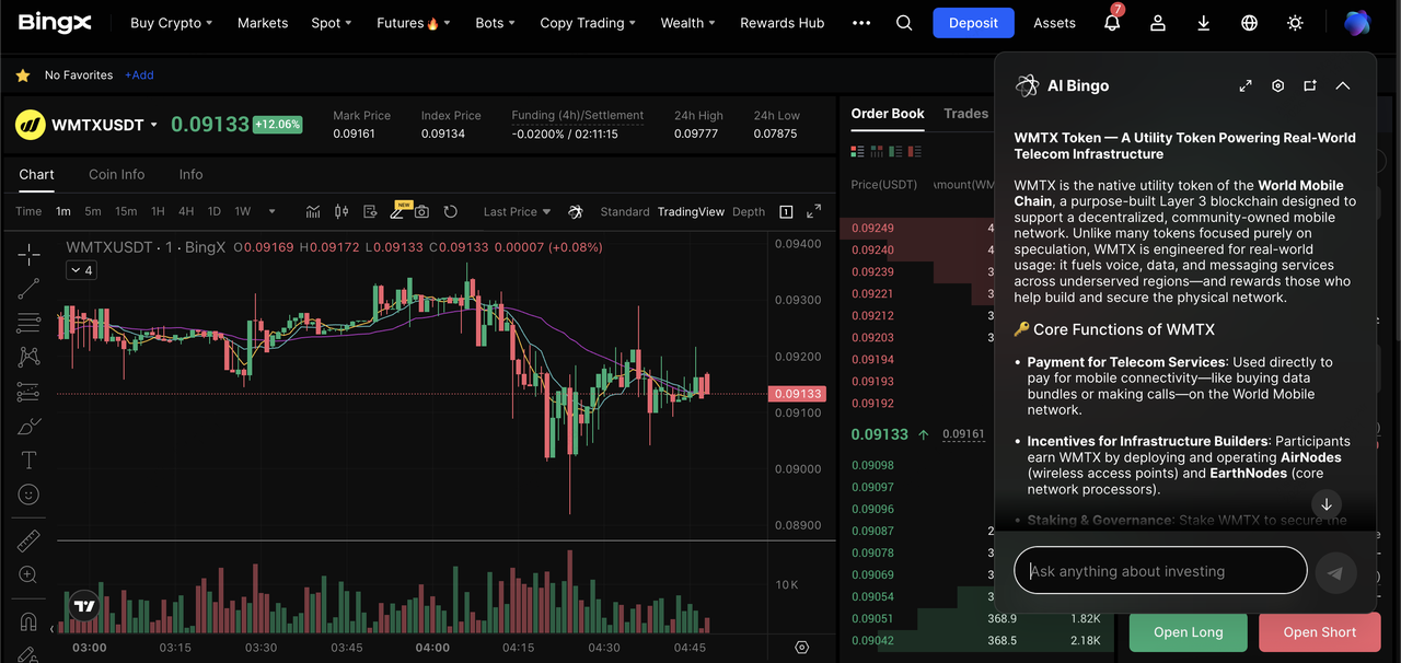 Pasangan trading WMTX/USDT di pasar spot didukung oleh insight BingX AI