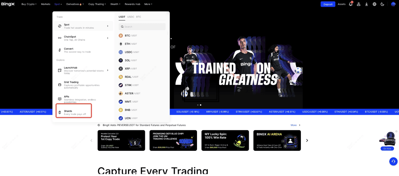 取引イベントなど、人気のBingX現物イベントに登録するユーザーはシャードを獲得できます。