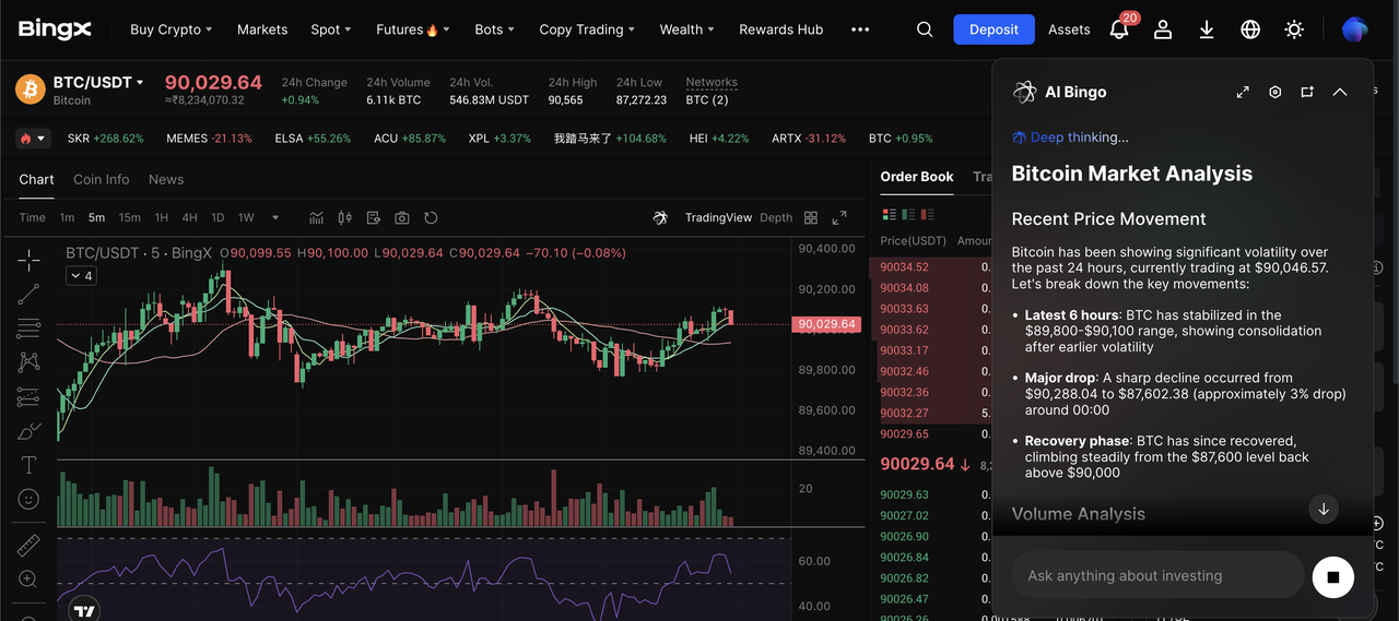 BingXは、シンプルなBTC購入フローとBingX AIインサイトを組み合わせることで、プロセスを特に初心者に優しくしており、ビットコインを購入し取引する際に市場状況を理解し、リスクを管理し、よくある間違いを避けるのに役立ちます。
