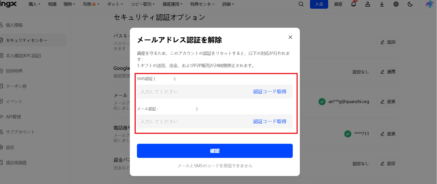 3) 資金の安全性を確保するため、安全性項目を削除または変更してから24時間後にのみ、出金することができます。