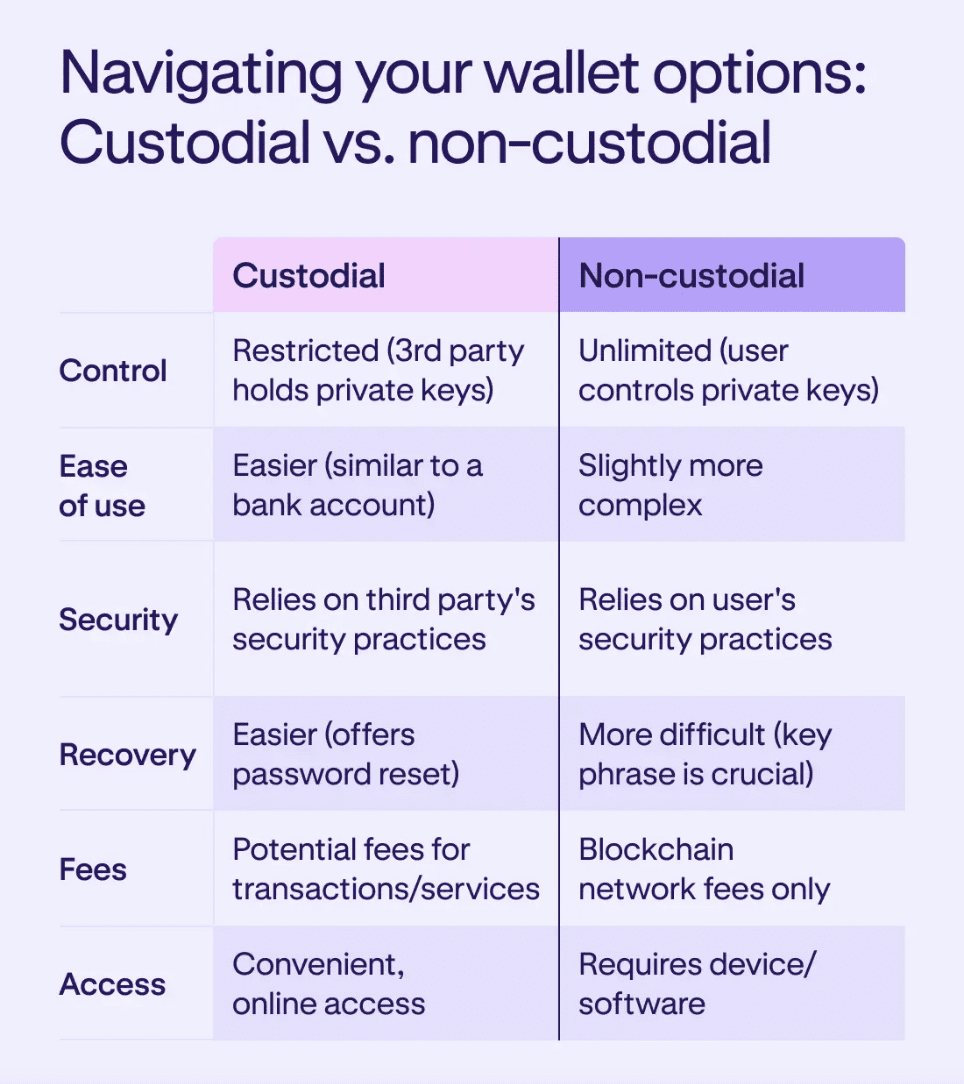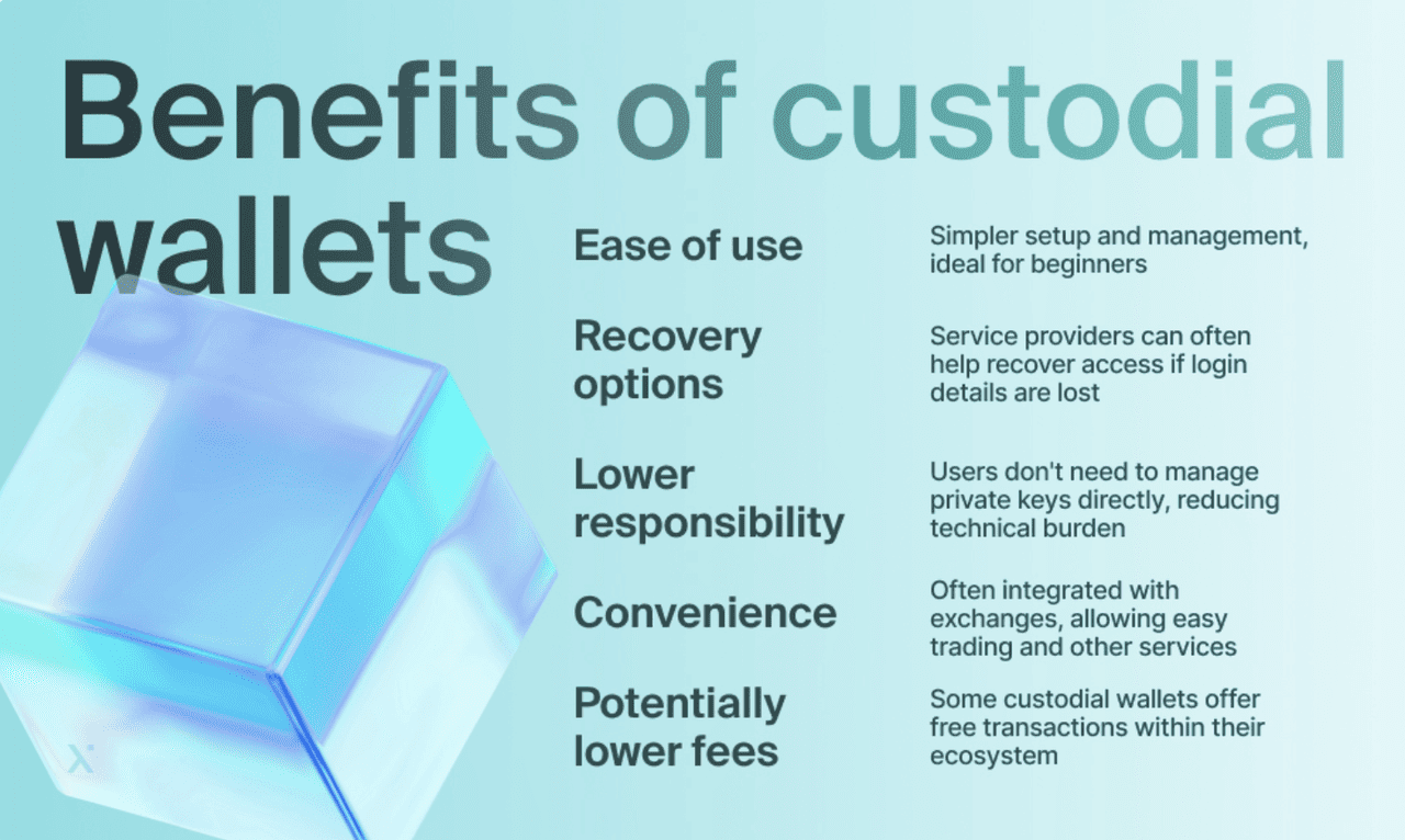 chaves privadas a uma terceira parte é a conveniência. Se você não é especialmente técnico ou não confia em gerenciar a segurança de suas criptomoedas, confiar em uma plataforma focada em segurança pode aliviar muita da pressão. Isso simplifica sua experiência e reduz o risco de perder o acesso devido a erros do usuário. No entanto, as carteiras custodiais apresentam o risco de hacks na plataforma ou congelamento de retiradas.
