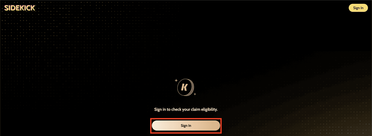 O Genesis Airdrop é a distribuição oficial de tokens da Sidekick para membros verificados da comunidade. Se você tem uma conta Sidekick, vinculou seu perfil do Twitter e atende aos requisitos mínimos de atividade, pode reivindicar seus tokens $K. Veja como: