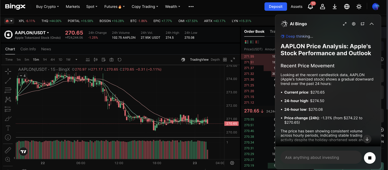 Par de negociação AAPLON/USDT no mercado spot impulsionado por insights da BingX AI