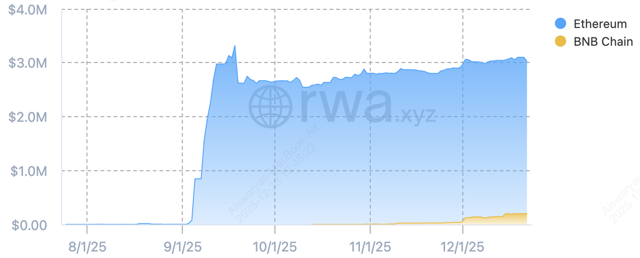 Do ponto de vista de uso e liquidez, a AAPLON atualmente é negociada com um valor patrimonial líquido de cerca de US$ 274, estreitamente alinhado com o preço à vista da Apple. O token representa aproximadamente US$ 3,10 milhões em valor total de ativos on-chain, detidos por mais de 1.860 carteiras. O volume de transferência mensal de cerca de US$ 21,7 milhões, um aumento de 56% mês a mês, indica forte atividade de negociação em relação ao seu tamanho, especialmente em comparação com as contrapartes xStock. Emitida principalmente na Ethereum e BNB Chain, a AAPLON está se expandindo gradualmente para blockchains adicionais, refletindo a crescente demanda institucional e DeFi por exposição regulada e on-chain a ações blue-chip dos EUA.