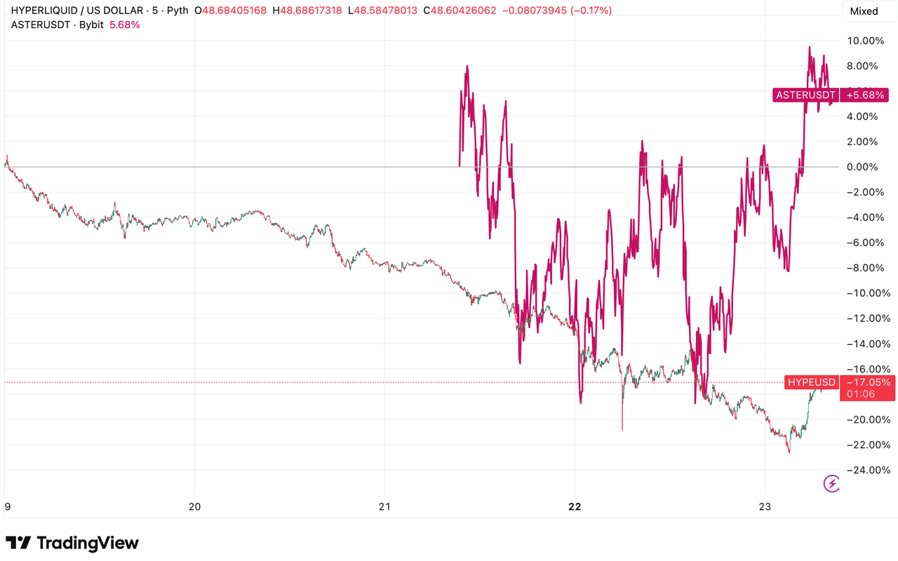 Meanwhile, Hyperliquid’s HYPE token remains the established heavyweight, trading in the $48–$59 range with a market cap above $16 billion, nearly 978,000 users, and over $1.5 trillion in cumulative trading volume. These contrasts highlight a defining showdown: ASTER is the explosive newcomer fueled by hype and innovation, while HYPE is the veteran backed by deep liquidity, transparency, and market dominance.