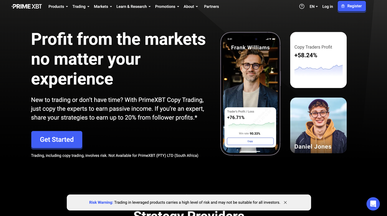 PrimeXBT специализируется на высоколевереженном копи-трейдинге, сосредоточенном на фьючерсах и CFD, предлагая быстрое развертывание и четкое отслеживание для пользователей, ориентированных на производительность. Платформа привлекает тех, кто комфортно работает с агрессивными стратегиями, но приоритизирует ручные корректировки над комплексными защитами ИИ, мониторингом в блокчейне или уникальными фьючерсными продуктами, что делает ее менее оптимальной для абсолютных новичков, ищущих максимальную безопасность.