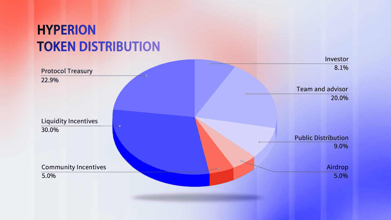 Общий объем предложения Hyperion составляет 100 миллионов токенов RION, распределенных следующим образом: