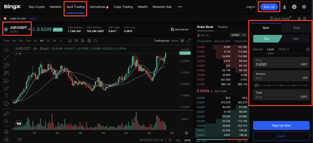 4. Купите JUP: приобретите токен на спотовом рынке BingX. Для торговли деривативами BingX также предлагает рынки USDT-M и Coin-M фьючерсов, что позволяет спекулировать на движении цены JUP без фактического владения токеном.