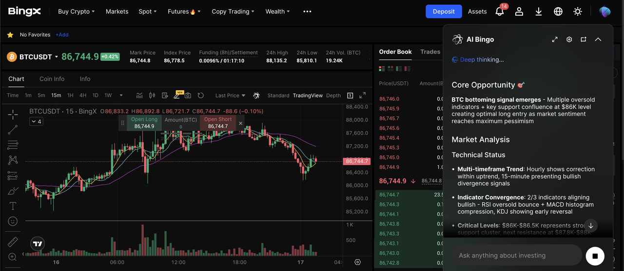 Торгова пара BTC/USDT на спотовому ринку за підтримки BingX AI