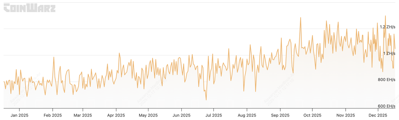 • Хешрейт мережі: 1,085 ZH/s (зеттахешів за секунду), або 1,085 EH/s, що означає, що глобальна майнінгова мережа виконує більше одного секстильйона (10²¹) хешів за секунду.