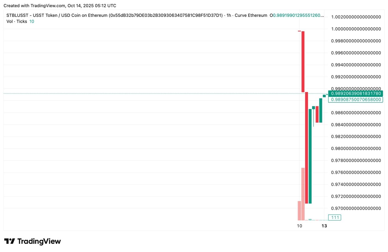 5. Дефіцит ліквідності нових монет: Щойно запущені стейблкоїни часто не мають глибокої ліквідності та шляхів погашення, що робить їх нестабільними під час початкової торгівлі. Наприклад, USST впав до $0,96 протягом кількох годин після запуску, оскільки тонка ліквідність та спекулятивний продаж перевантажили ранні ринки.