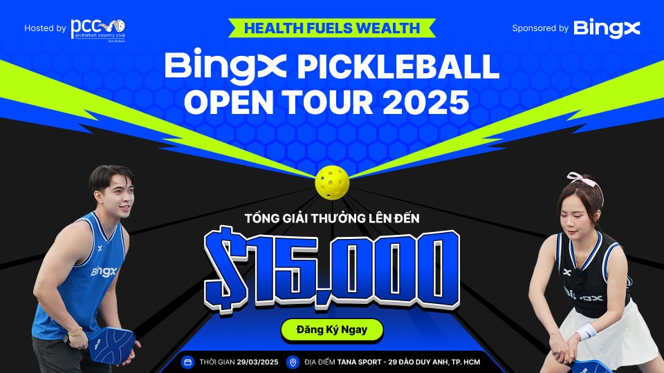 BingX Pickleball Open Tour 2025, giải đấu đỉnh cao do PCC tổ chức, sẽ chính thức khởi tranh vào ngày 29/03/2025 tại TP. Hồ Chí Minh. Sự kiện hứa hẹn mang đến những màn tranh tài gay cấn, nơi các vận động viên không chỉ thể hiện kỹ năng vượt trội mà còn có cơ hội kết nối với những gương mặt nổi bật trong cộng đồng Web 3.0. Với tổng giải thưởng lên đến 400 triệu đồng, đây sẽ là sân chơi lý tưởng dành cho những ai đam mê Pickleball và khao khát chinh phục những đỉnh cao mới. Thông Tin Chung Về Giải Đấu Bên cạnh việc nhận tiền thưởng, các vận động viên còn có cơ hội sở hữu những phần quà giá trị như vợt Pickleball, vali và balo độc quyền từ nhà tài trợ chính – Sàn BingX. Sự kiện này không chỉ là nơi tranh tài mà còn là dịp gặp gỡ và trao đổi kinh nghiệm giữa các chuyên gia và người chơi Pickleball. Về Nhà Tài Trợ – Sàn BingX BingX là sàn giao dịch tiền điện tử hàng đầu với hơn 20 triệu người dùng trên toàn cầu. Nổi bật với các dịch vụ giao dịch giao ngay, hợp đồng tương lai, và sao chép gi