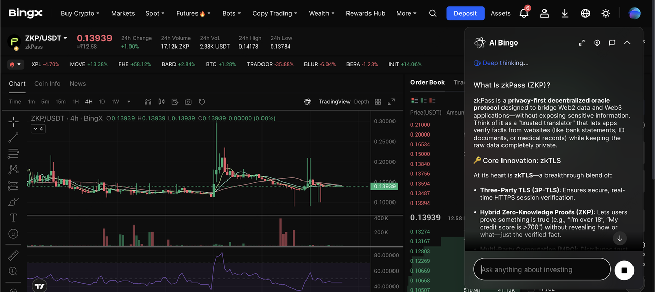 由BingX AI洞察驅動的現貨市場ZKP/USDT交易對