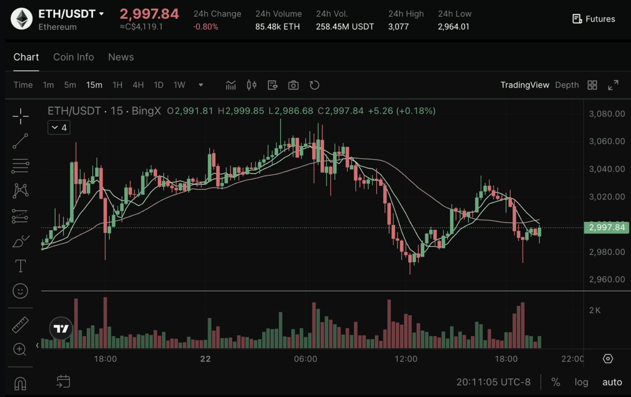 ETH/USDT 交易對在由BingX AI洞察力驅動的現貨市場上
