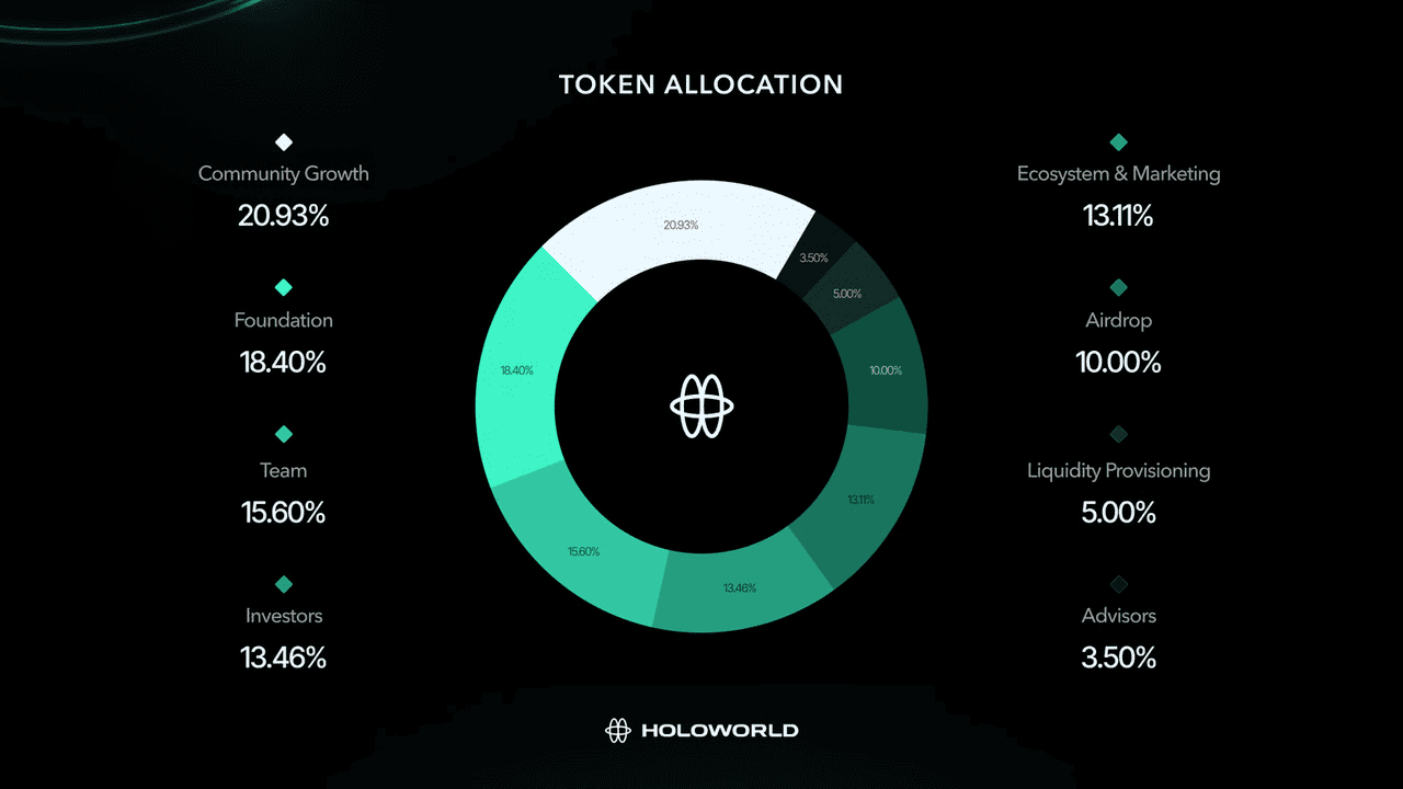 • 社區增長(20.93%): HoloLaunch 和開放 MCP 網路上創作者和用戶的激勵;4 年線性解鎖。