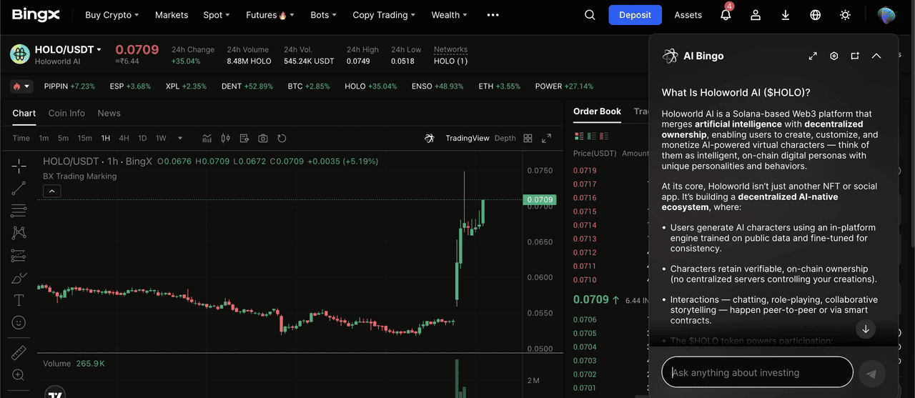由 BingX AI 洞察支持的現貨市場上的 HOLO/USDT 交易對