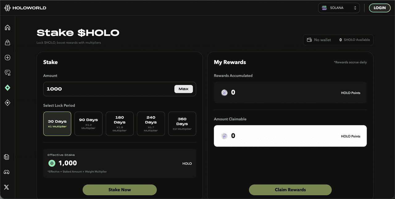 • 質押和參與: 質押 $HOLO 為用戶提供通過 HoloLaunch 優先訪問新 AI 項目發射的機會。