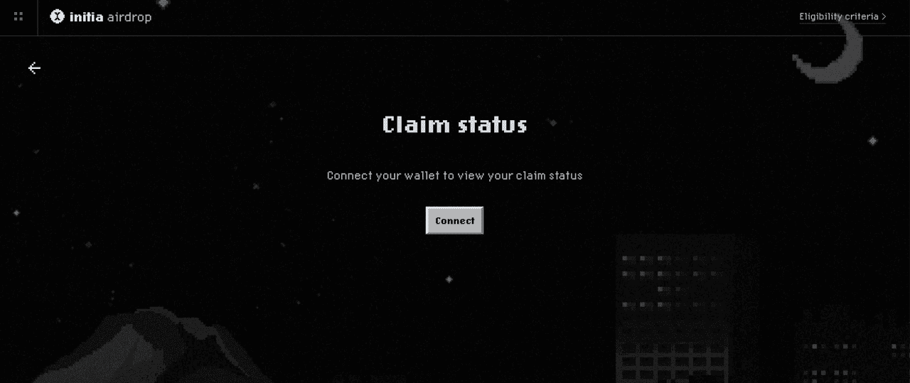 前往 airdrop.initia.xyz 並連接您的錢包。注意:所有 Initia 貢獻者均不符合此次空投資格。