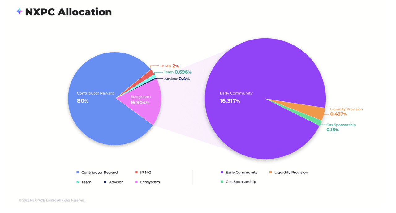 • 持續的社群激勵:持續透過活動參與、社群互動與使用者成長導向的機制,將 NXPC 分發給積極貢獻的玩家與創作者,強化正向循環。